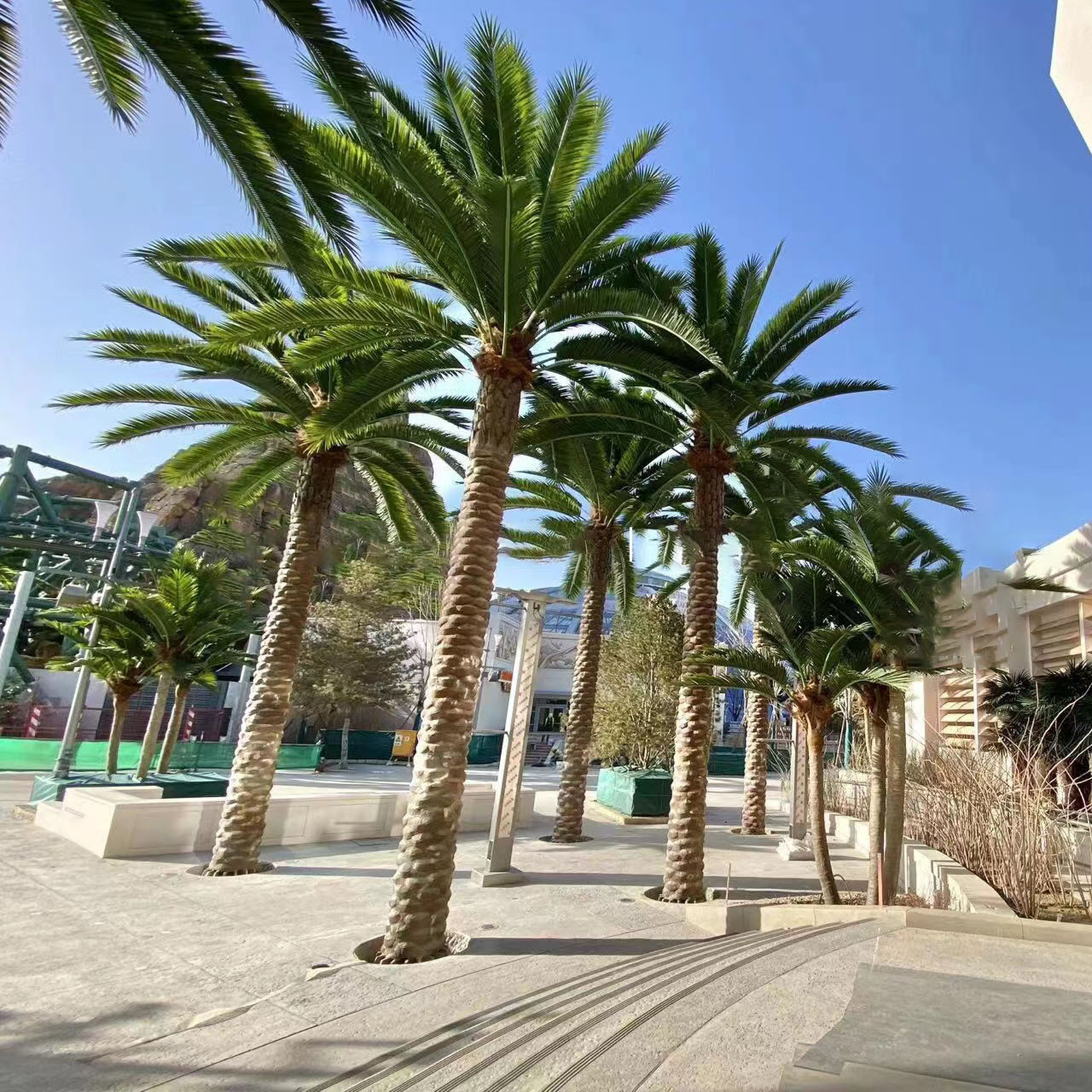 Large artificial coconut trees for outdoor landscape decoration.