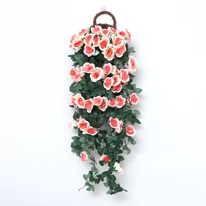 Artificial Rose Vines Baskets Outdoor Wall Display Simulated Flowers